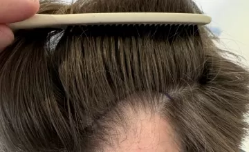 The earliest stage of male hair loss. It is characterized by a deepening temporal recession.
