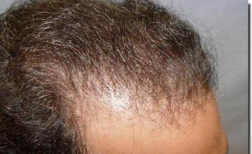 Occurs when the connecting bridge of hair disappears leaving a single large bald area on the front and top of the scalp. The hair on the sides of the scalp remains relatively high.