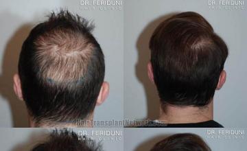 In this patient’s case, there has been a considerable improvement in hair thickness and -growth in the crown area due to the medical therapy with finasteride 1mg. The crown area has not been addressed during the hair transplant procedure, the whole improvement in the crown area (all new hairs) is a result of the effect of finasteride.