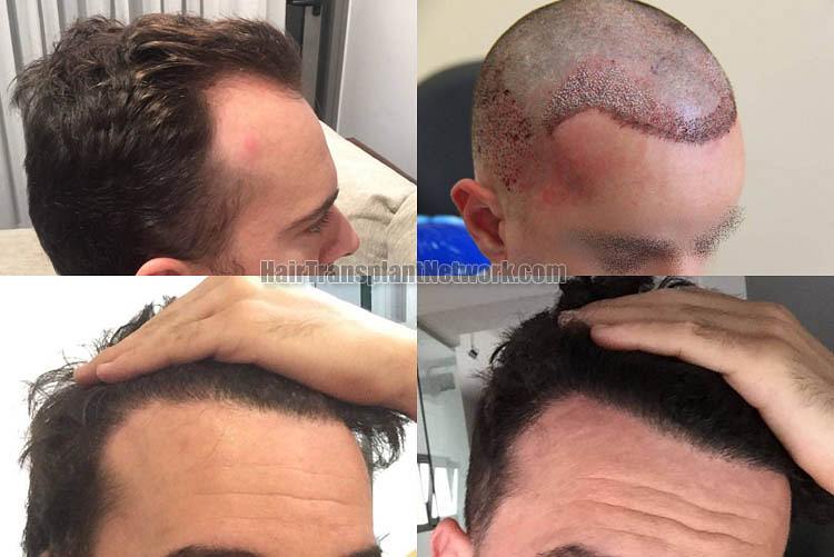 The goal of this surgery was to rebuild hairline and temples. All the pictures, except the surgery ones, were provided by the patient.