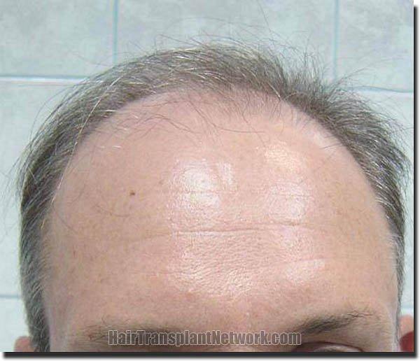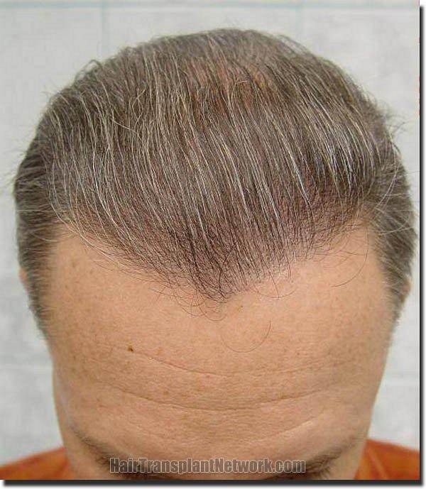 This 48 year old hair restoration patient had two hair transplant sessions totaling 2,995 FUGs or 5,436 hairs on his front and crown area. The hair is medium size, salt & pepper color and straight.Details:1-hair unit="654" FUGs2-hair unit="2,241" FUGs3-hair unit="100" FUGsThe donor area was closed with trichophytic closure and retention sutures were applied. The pictures show his result after 10 months follow up. The scar was minimal.