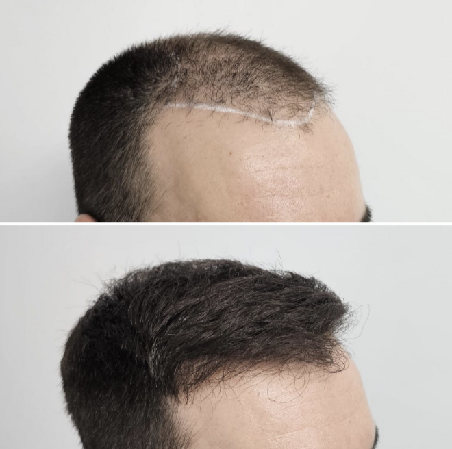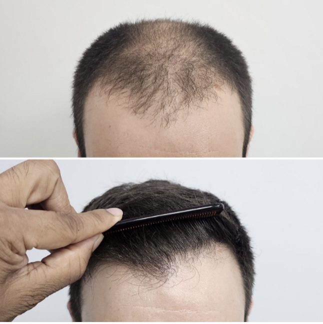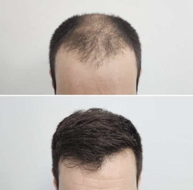 Male patient in his 30's with diffuse patterned alopecia received 3,938 grafts via FUE.