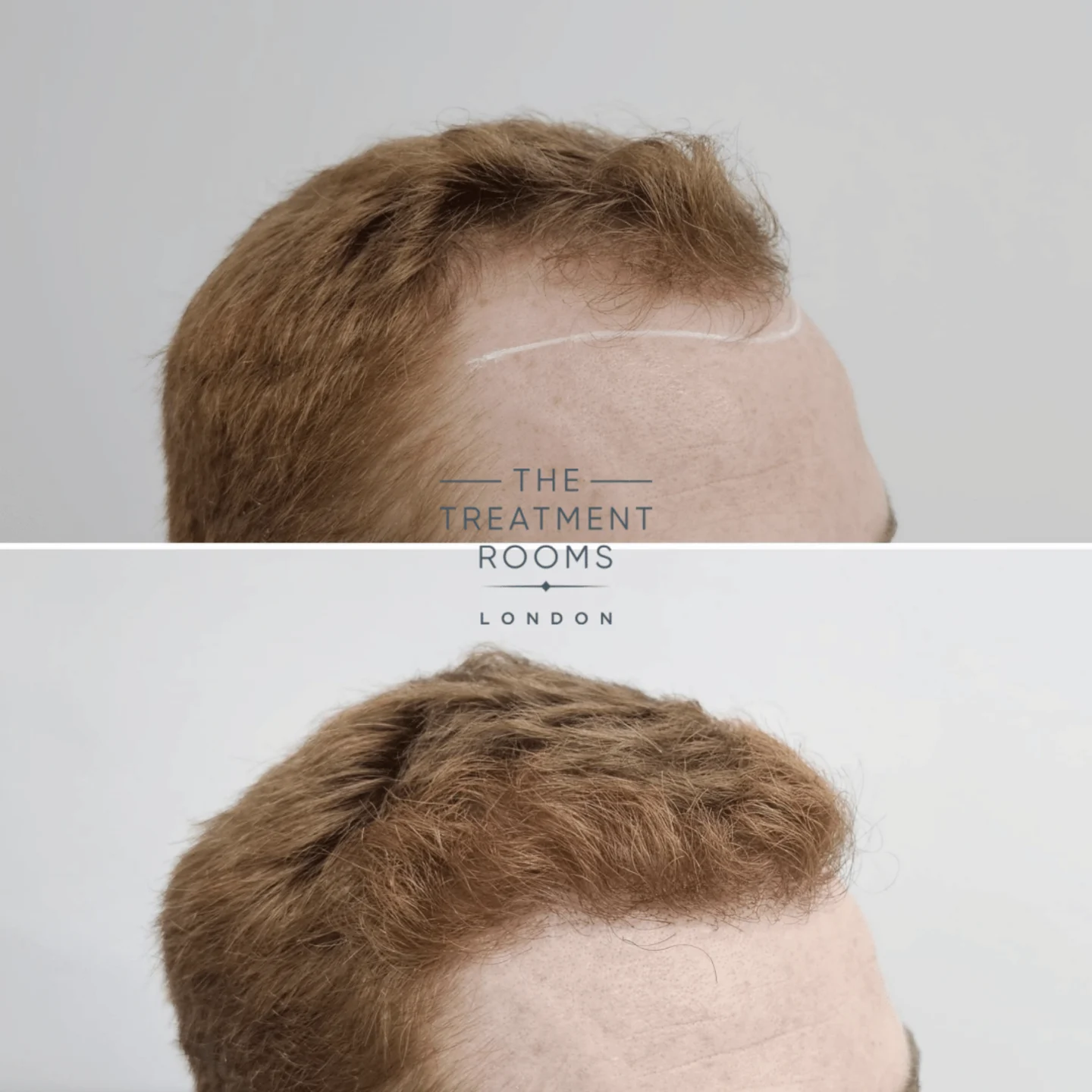 Graft placement focused on restoring a natural, age-appropriate hairline while building density through the frontal zone. Single-hair follicular units were utilised at the leading edge to create a soft transition, with multi-hair grafts placed posteriorly to support density and volume.