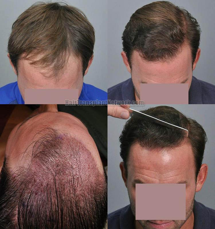 This patient is in his late 40’s and has the “A” pattern of frontal loss. We started him on finasteride and performed FUT of 3,164 grafts. We also performed my variation on PRP/ACell therapy which I believe helps to induce early growth and a thicker overall result for many of my patients.