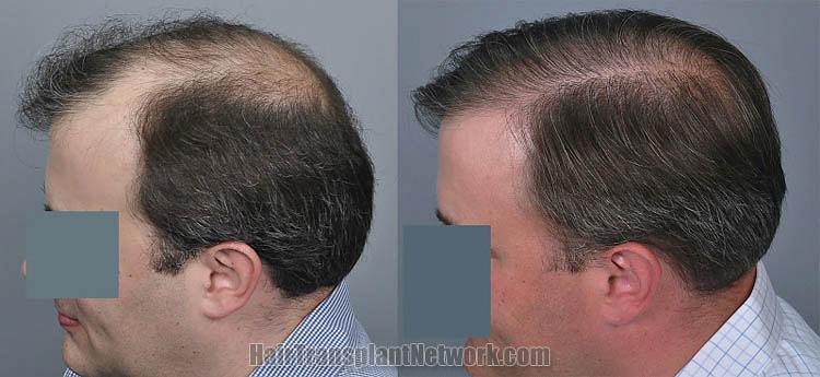This patient is in his mid-40’s and came to us with type V hair loss. We started him on finasteride and performed non-shaven FUT consisting of 4,289 follicular units. We also performed PRP/ACell to strengthen the miniaturizing follicles that were still present on his scalp.