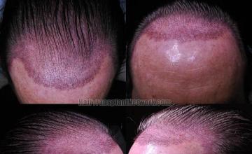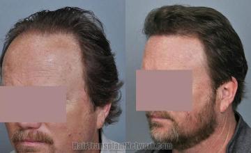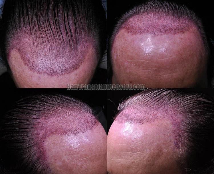This hair restoration patient is in his mid-50's with 4A hair loss pattern and wanted to restore his frontal zone. We started him on finasteride and performed 2,682 graft FUT (1-877, 2-1156, 3-540, 4-109; 5,245 hairs). He is shown 16 months post op. He healed very nicely and the donor scar was almost undetectable.