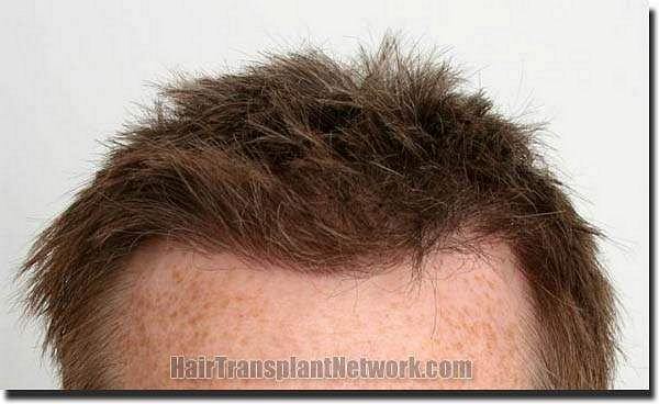 In 2007, this patient presented to Dr. True in his early 40's with hairline erosion. His primary goal was to be able to have treatment and be able to return to work without a hitch. This called for scaling back a bit on the size and scope of the first session to allow for this transition. The initial FUT of 620 follicular units consisted of 285 singles, 394 doubles, and 16 threes - 1,121 hairs.In 2009, having done this inconsipcuosly and pleased with the result, he proceeded with a second step, choosing to do FUE with Dr. Dorin. This session amounted to 771 grafts, adding additional density and a slight lowering of the hairline level. Of these, 322 were singles and 449 doubles ??“ a total of 1220 hairs transplanted. This FUE result is after 9 months.