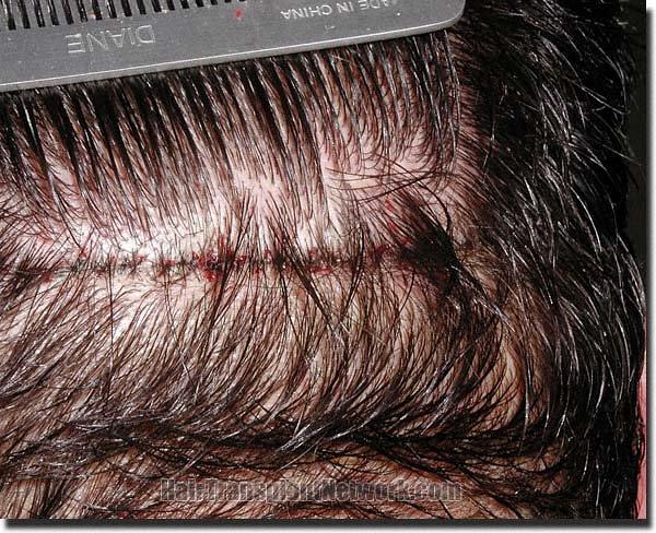 This patient is a 55 year old man who had 3032 grafts placed in one session to create a frontal hairline and fill in the frontal mid-scalp using high-density graft placement.