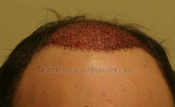 This is a patient who came in recently for follow-up from a surgery we did 9 years ago. He has been very happy with the results but wants to fill in the crown as that area has continued to bald over the last 9 years. The transplant has held up well over the last 9 years. We used 819 single grafts, 1714 double grafts, and 610 three-hair grafts, for a total count of 3143 grafts into the frontal scalp and mid scalp.