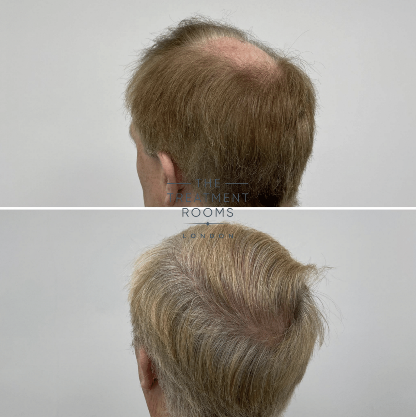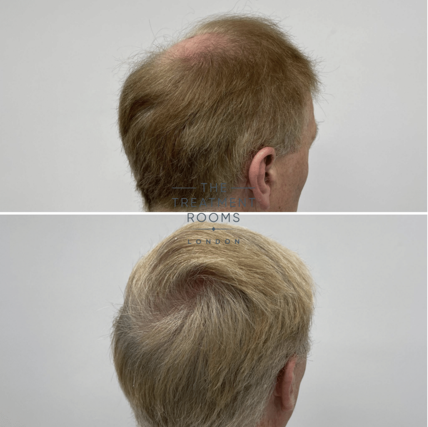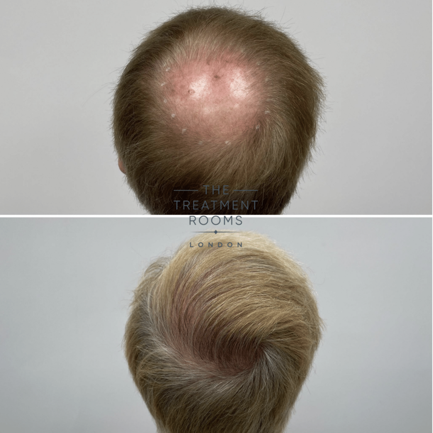 Male patient in his 50s presenting with crown thinning consistent with androgenetic alopecia. Hair loss within the crown was stable, with clearly defined margins of strong native hair surrounding the affected area. The thinning was localised and not actively spreading, making the crown an isolated treatment zone.