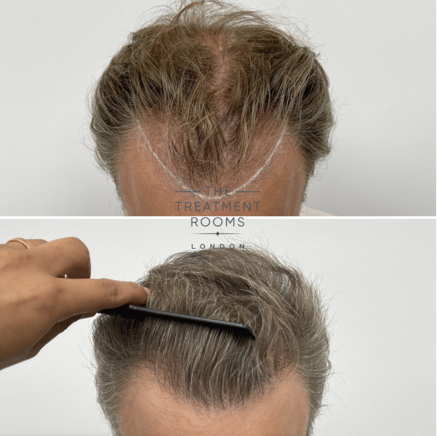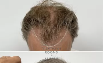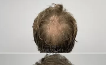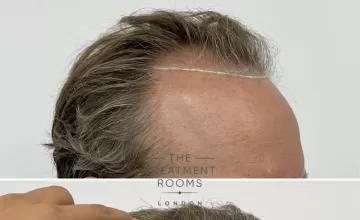 Grafts were allocated to achieve an age-appropriate restoration of the frontal hairline while improving density and coverage within the crown. Single-hair follicular units were utilised at the hairline to maintain a natural transition, with multi-hair grafts placed to build density in the crown and supporting zones.