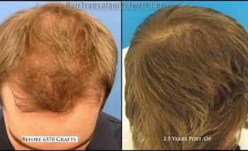Hair restoration surgery before and after result photographs with 6570 grafts