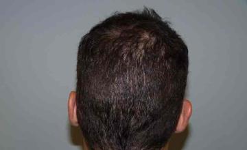 This 45-year-old gentleman had a hair loss pattern similar to a class 3v on the Hamilton Norwood hair loss scale.  His goal was to rebuild his hairline and add density to the frontal 1/3 of his scalp.