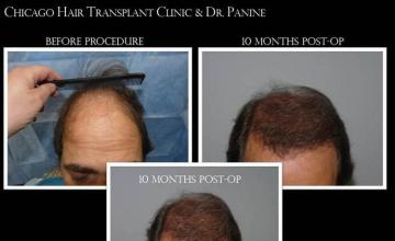 These are his results 10 months after his procedure. I think his results go a long way in showing the hair loss community that you can get great results with a small number of grafts when the procedure is done correctly. Remember that his goal was to look younger; this goal was definitely achieved. I understand that when he tilts his head all the way back, he looks very thin in the crown, but people do not walk around holding that position. You have to keep in mind that this was an FUE case, yet the yield this patient achieved was as good as if it had been a FUT procedure. Needless to say, the patient is extremely happy with his results and is considering another procedure to add some density.
